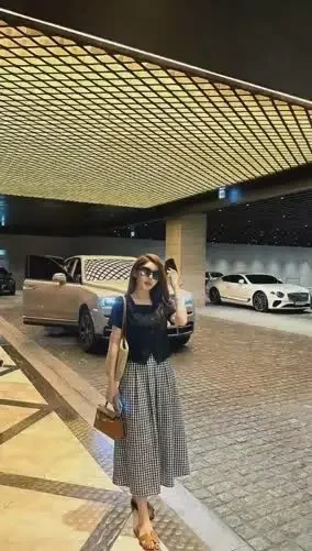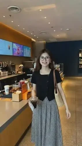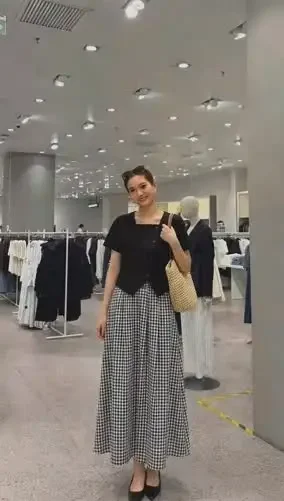FADFAD Setelan wanita dua potong atasan kemeja lengan pendek warna solid dan rok panjang model a-line motif kotak