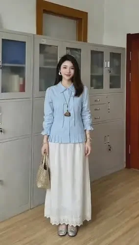[NEW]ASAYA Setelan wanita bergaya retro tiongkok, atasan lengan panjang dengan kancing buatan tangan dipadukan dengan rok model a-line yang stylish