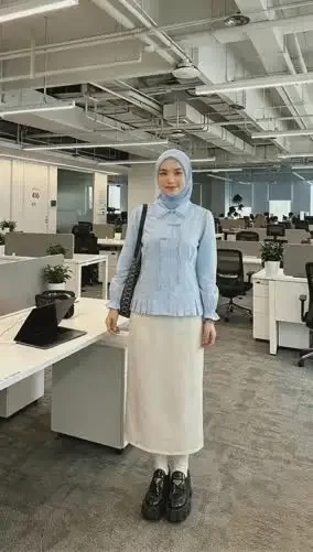 [READY STOCK]ASAYA Rok kemeja lengan panjang leher awak setelan bunga
