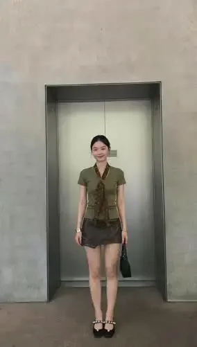 CHICMORE Kaos lengan pendek berkerah v ala chic untuk wanita syal motif polkadot