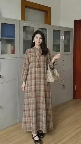 [NEW]ASAYA Setelan wanita bergaya retro tiongkok, atasan lengan panjang dengan kancing buatan tangan dipadukan dengan rok model a-line yang stylish