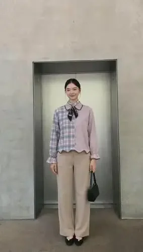 ASAYA Kemeja lengan panjang motif korea terbaru dengan bagian bawah yang tidak beraturan